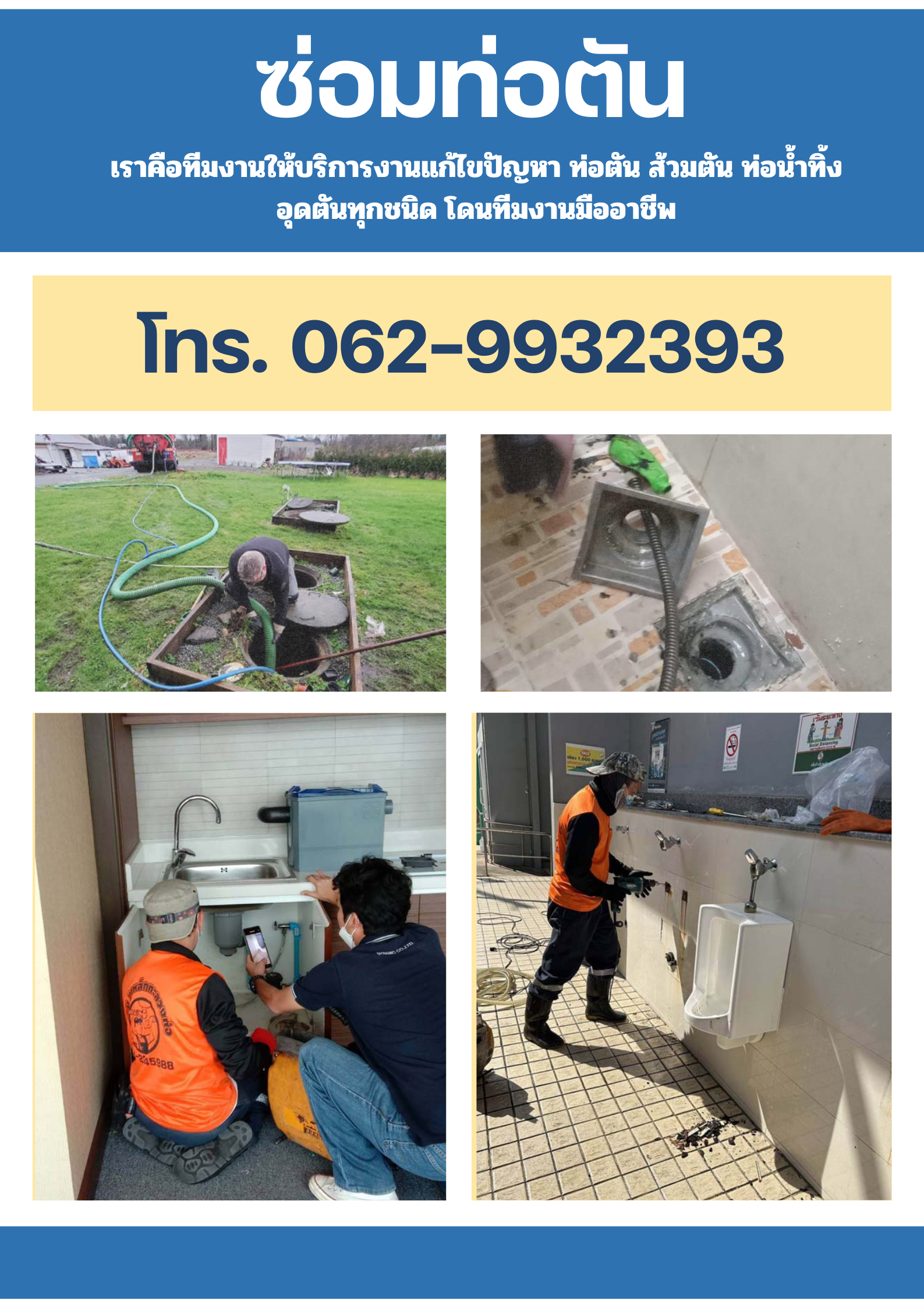 ทีมช่างมืออาชีพ: เรามีทีมช่างที่มีประสบการณ์และความเชี่ยวชาญในการแก้ไขปัญหาท่อตันทุกประเภท